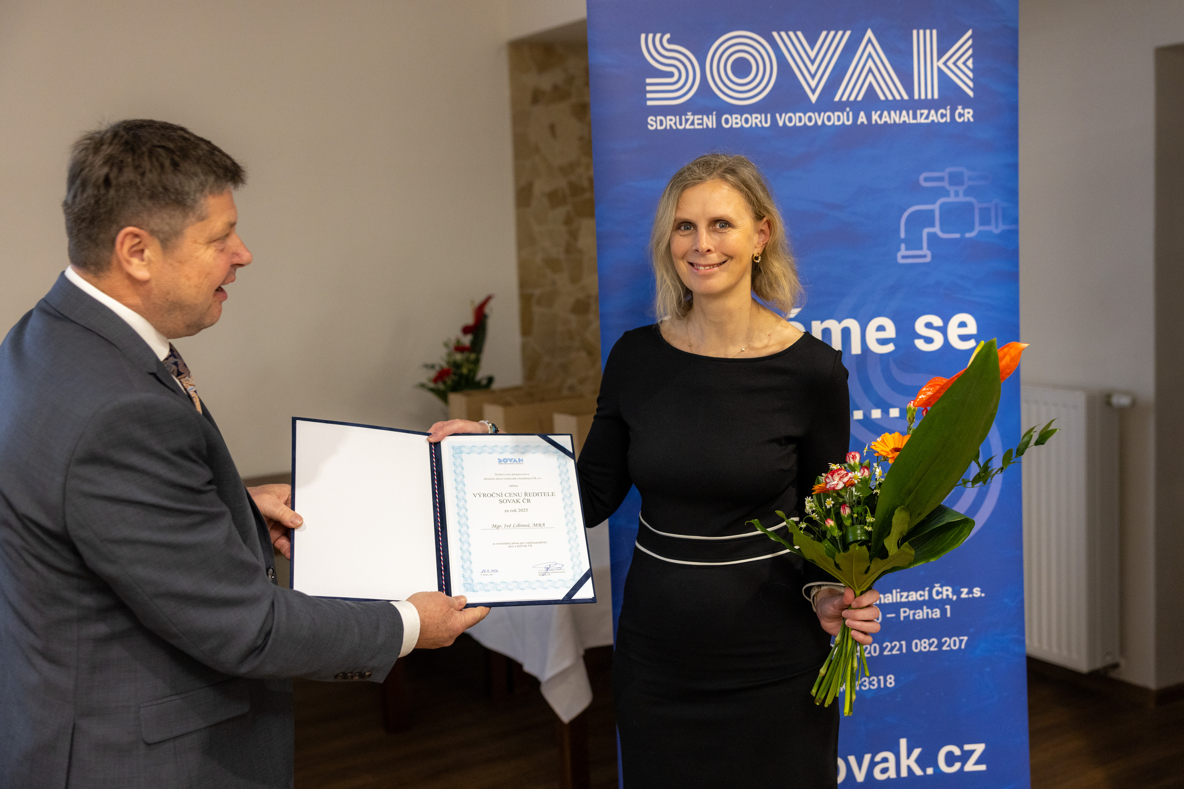 PRAHA (27. dubna) Součástí valné hromady Sdružení oboru vodovodů a kanalizací ČR, z. s., která se konala 22. dubna 2026 v konferenčním sále Stodola Hotelu Allvet v Drnovicích u Vyškova, bylo i předání výročních cen ředitele SOVAK ČR. Za rok 2025 ji obdrželi členka Komise pro rozvoj lidských zdrojů Mgr. Iva Librová, MBA, člen Komise pro úpravny vody Ing. Pavel Král, Ph.D., a člen Komise pro ČOV Ing. Filip Wanner, Ph.D.